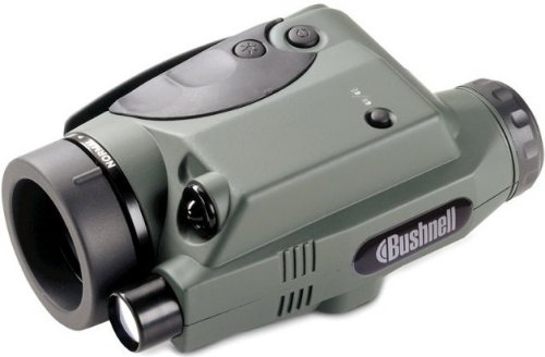 Bushnell Nightvision 2.5x42 mm with Built - in Dual IR Monocular... stalk animals through the woods, day or night! True hunters know their surroundings inside and out... that includes understanding the nocturnal habits of the wildlife they're trying to catch. This Nightvision erases your human disadvantage, granting you access to the secrets of the night in razor-sharp clarity! Features dual built-in infrared illuminators and advanced light-gathering technology for top-quality sight when the lights go out. And you'll love the Stealthview for long-range brightness and clarity. No matter if you're exploring caves or simply navigating a pitch-black forest, this Nightvision will come through. The skinny: 2.5x magnification with a 42 mm objective lens; Viewing range is 4-600 ft.; F.O.V. @ 1000 yards is 79 ft.; Runs on 2 AA batteries; Measures 6 2/3 x 3 2/3 x 2 2/3", weighs 14 ozs.; Has built-in tripod mount; See clearly at night... get your Nightvision here! Order Today! WARNING: You must be 18 or older to purchase Night Vision. This product cannot be shipped to D.C.; MA; Canada or Puerto Rico. Night Vision cannot be shipped Parcel Post. Please check your State, County and City laws for restrictions before ordering Night Vision. Bushnell Nightvision 2.5x42 mm with Built-in Dual IR Monocular